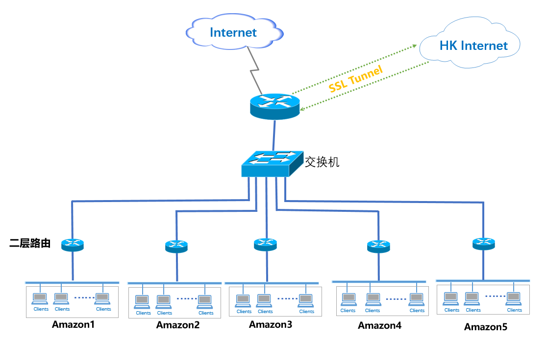 如上图网络架构,一线多账号防关联方案,多个店铺给多个独享ip,确保每个账号都从独立线路出口到电商后台。