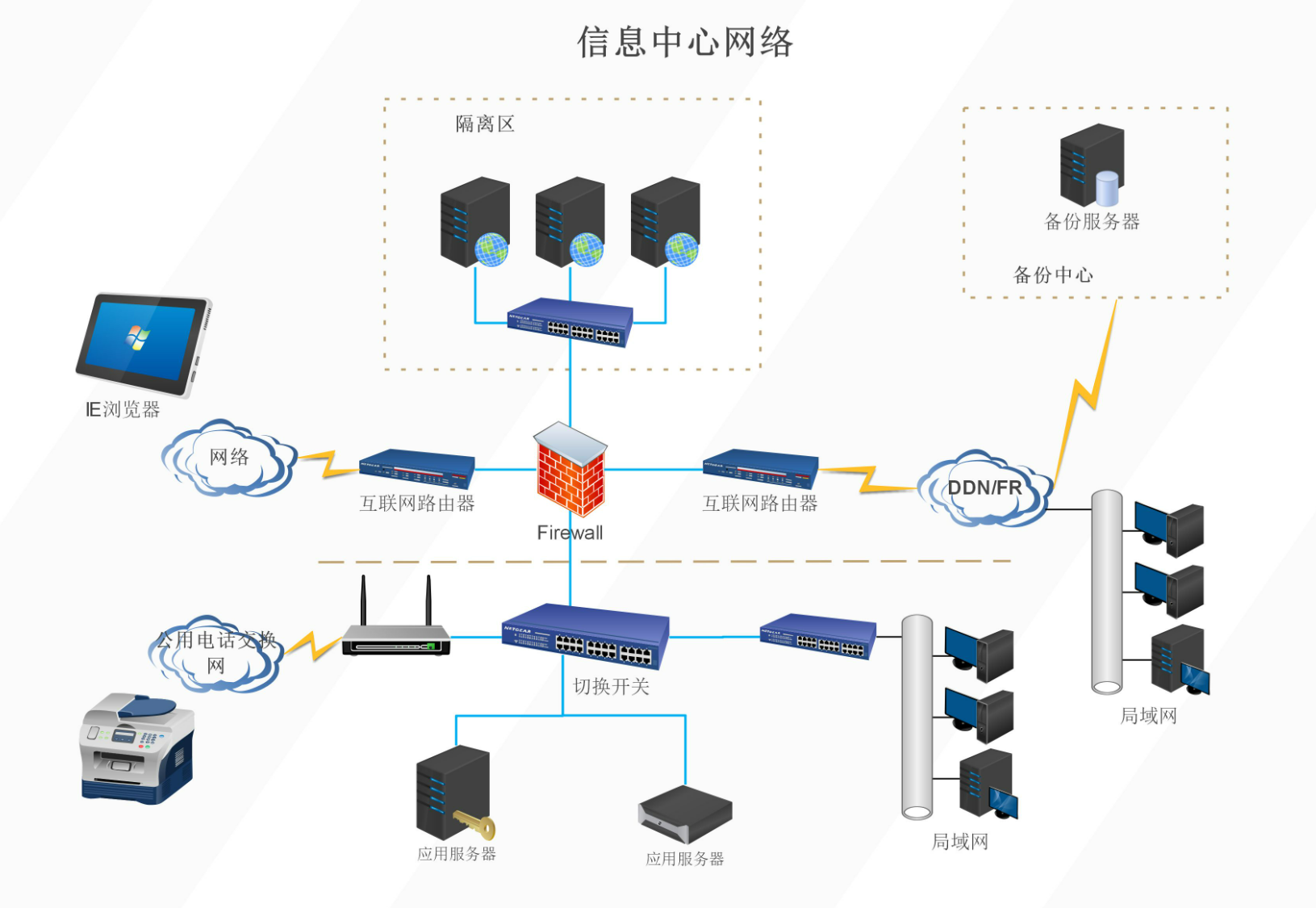 计算机网络系统主要由网络核心交换机、桌面交换机、路由器、防火墙、服务器、Internet线路等组成,实现数据交换、VLAN、VPN、语音/视频传输等应用。随着Cat6、Cat6A布线的普及,千兆桌面万兆主干已经成为当今应用的主流。网络系统设计应考虑高可用性、高可管理性、高可靠性、高安全性及高可扩展性。